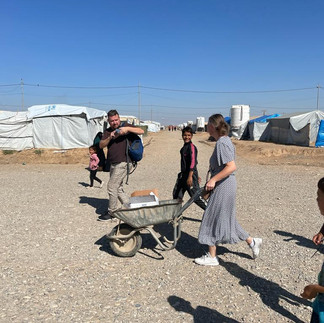 De volgende morgen vertrekken we naar Hassan Shami, een verwoest dorp met gelijknamig vluchtelingenkamp. Totaal verblijven hier 1280 gezinnen. Het kamp is in 2014 geopend, omdat IS NinevƩ bezette. In 2016 is het kamp uitgebreid. Sinds 2015 kampen zijn er 6 kampen voor Arabieren (daarnaast ook nog kampen voor andere bevolkingsgroepen) in regio Erbil. De vluchtelingen in deze kampen wonen alleen in tenten, er zijn geen barakken o.i.d. In het kamp waar we zijn, wonen familieleden (voornamelijk vrouwen en kinderen) van IS-strijders. Zij mogen het kamp niet verlaten en verblijven hier ver van Erbil, om de veiligheid te waarborgen.