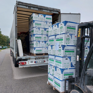Na wat over en weer sms-en met dominee Johanna Marten wordt er een datum afgesproken voor het transport, het wordt vrijdag 23 september. Henk Jan regelt de mannen die helpen laden en een heftruck. De vrachtwagen zou er om 9 uur zijn, maar geen vrachtwagen......half 10, 10 uur..... nog steeds niets. In alle vroegte waren alle 26 pallets al naar voren gereden om snel te kunnen laden, maar helaas. De buienradar geeft aan dat het gaat regenen en Henk Jan rijdt alles weer naar binnen. Martin en Henk Jan hebben de hele morgen contact, en ook met Michel, de zoon van Johanna in Irak. Alle papieren zijn inmiddels geregeld.