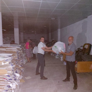 Op maandag 24 oktober, worden er in de opslag in Duhok zakken gemaakt om later die week uit te delen. De vrijwilligers uit Kampen, die met deze reis mee zijn, werken zich letterlijk en figuurlijk in het zweet om ruim 700 gezinszakken te vullen. De bedoeling is dat we in ƩƩn zak wat mannenkleding, vrouwenkleding, kinderkleren, een jas, schoenen, speelgoed en wat uit de doos diversen doen. Het loopt gesmeerd, ongeveer hetzelfde als tijdens het sorteren, maar dan andersom.